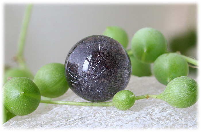 この石の内包物はゲーサイトやレピドクロサイトも含まれたビーズで