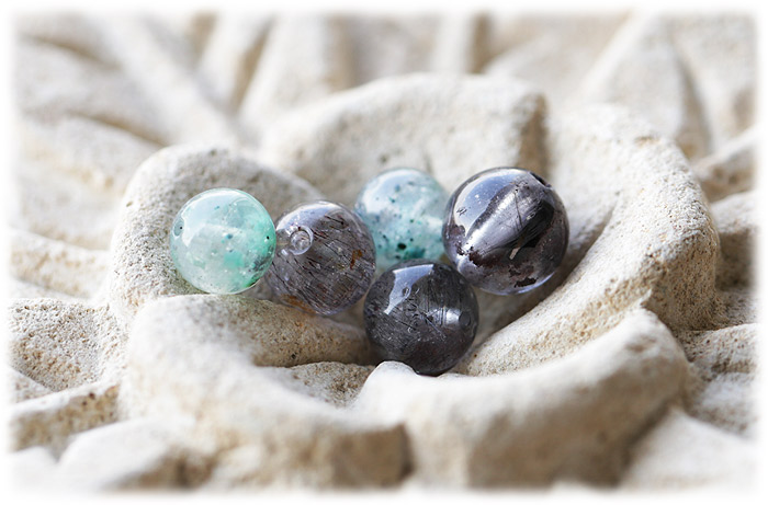 クリスタルにインクルージョンしたレアなビーズをセットにしました。