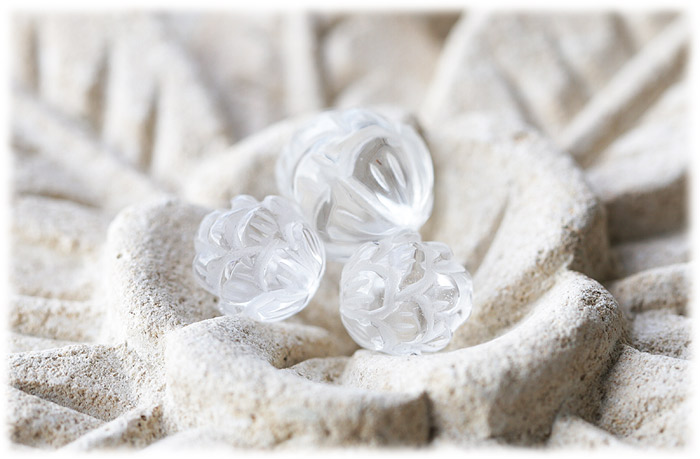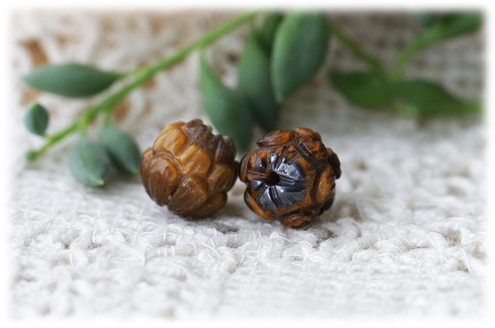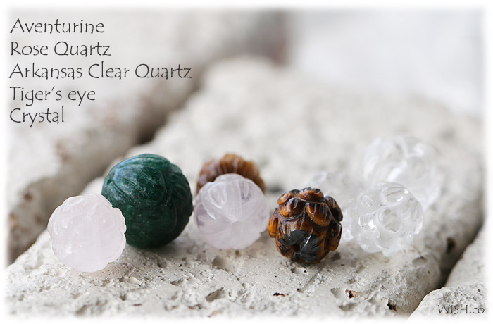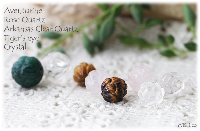 ロータス(蓮)の形の いろいろな石のビーズを集めました。